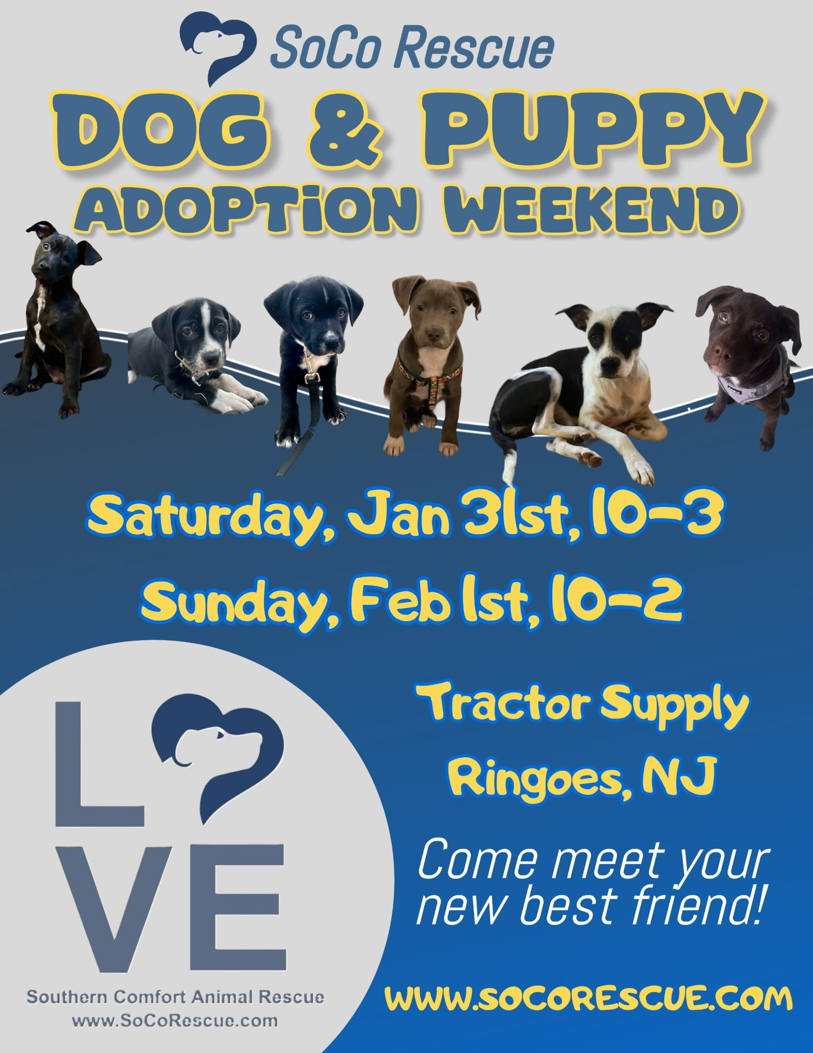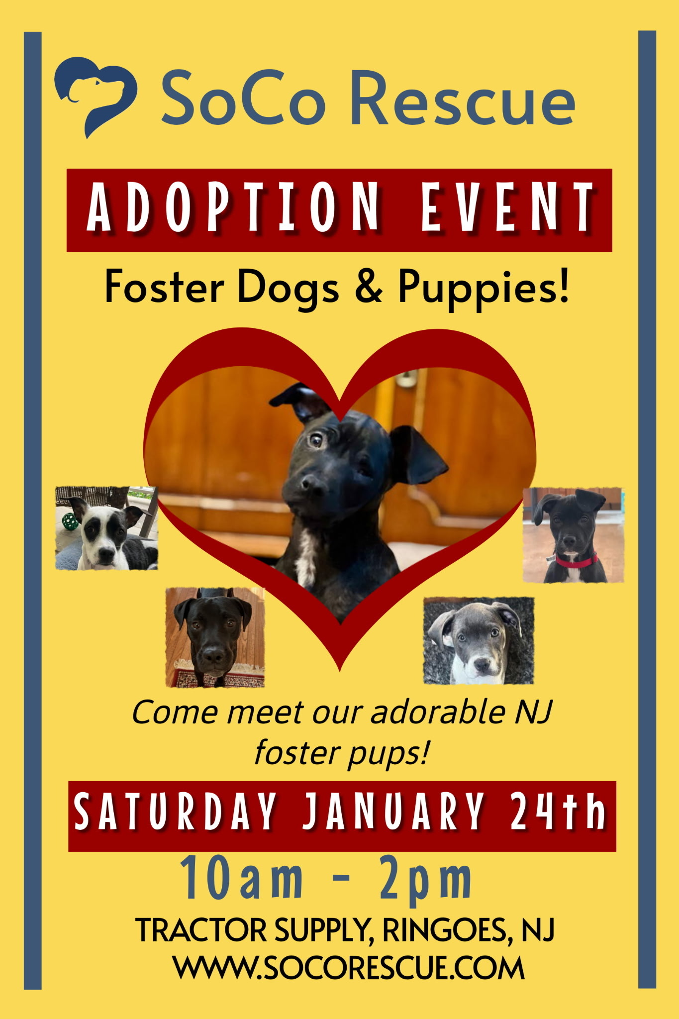 Rescue Knows No State Lines — Georgia Roots, New Jersey Homes SoCo Rescue is a 501(C)(3) Nonprofit registered in the US under EIN: 22-3931300 Shelter location: 600 Vance Road, Tarrytown, GA 30470 Adoption location: Ringoes, NJ